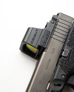 Durch Umschalten zwischen einem 2-MOA-Punkt, einem 2-MOA-Punkt + 32-MOA-Kreis, einem 6-MOA-Punkt, einem 6-MOA-Punkt + 32-MOA-Kreis und einem 32-MOA-Kreis kannst Du das Red Dot ganz nach deinen persönlichen Wünschen konfigurieren.